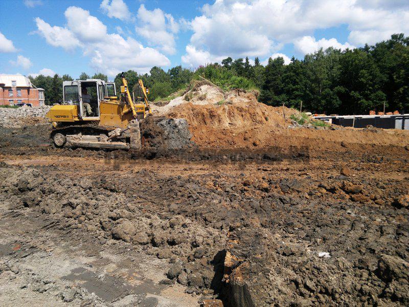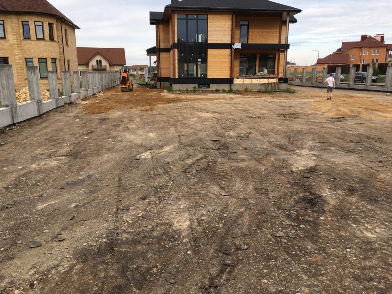 Далее следует этап земляных работ: подсыпка участка, горизонтальное выравнивание участка. Значительный объем земляных работ – процесс необходимый для формирования обновленного рельефа. Он требует привлечения специализированной техники.